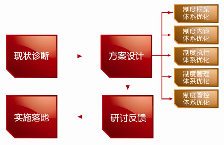 華夏經(jīng)緯在充分調(diào)研的基礎(chǔ)上,評(píng)價(jià)現(xiàn)有制度體系的基本運(yùn)行情況,評(píng)估現(xiàn)有制度體系與管理實(shí)際的契合程度,對(duì)標(biāo)行業(yè)標(biāo)桿企業(yè),從行業(yè)情況 、客戶實(shí)際情況及需求出發(fā),進(jìn)行制度框架體系優(yōu)化、制度內(nèi)容體系優(yōu)化、制度執(zhí)行體系優(yōu)化、制度管理體系優(yōu)化、制度管控體系優(yōu)化。