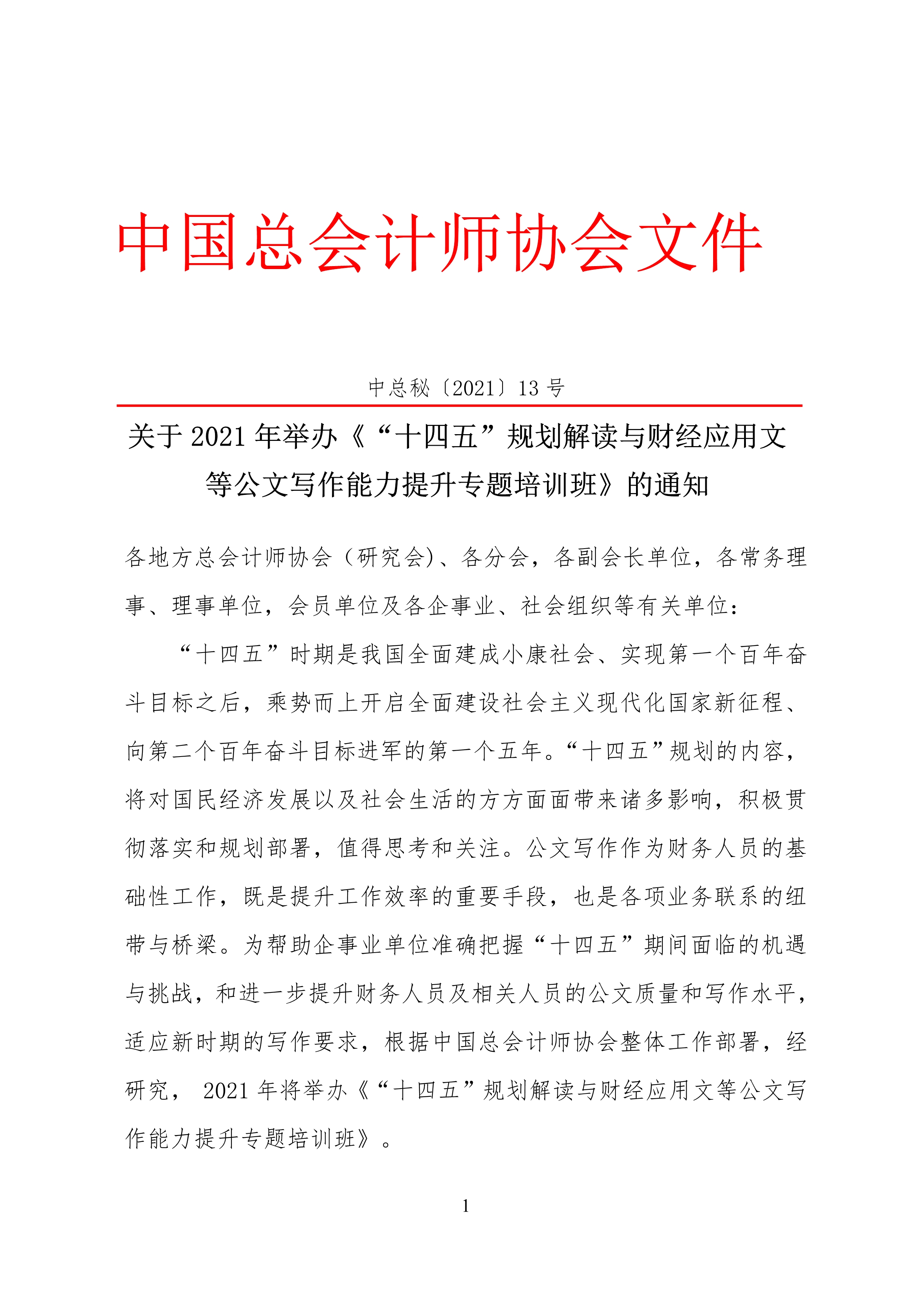 附件:中總秘[2021] 13號 關于2021年舉辦《“十四五”規(guī)劃解讀與財經(jīng)應用文等公文寫作能力提升專題培訓班》的通知/upload/edit/file/20210220/20210220163807_59996.pdf