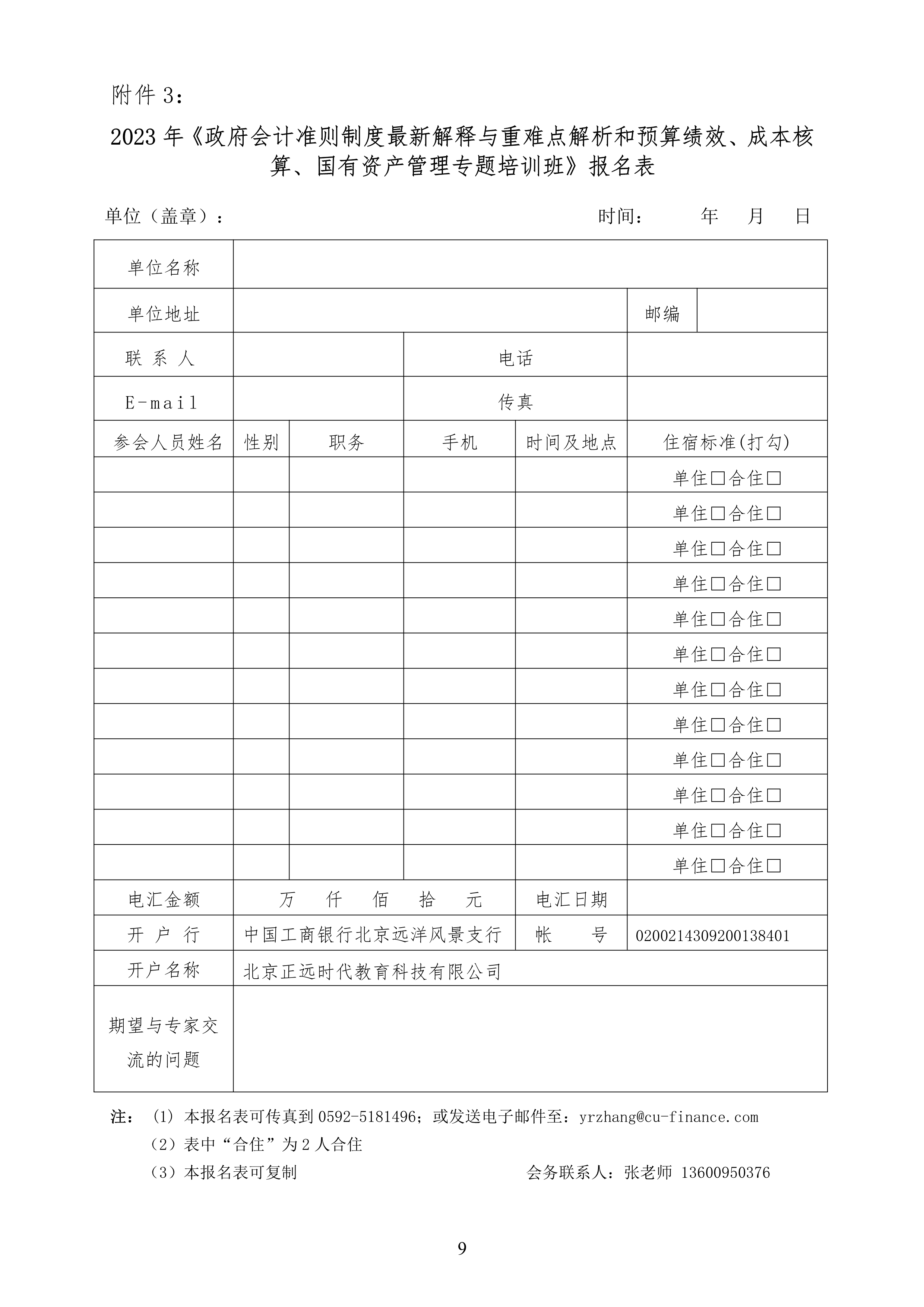 附件:2023年《政府會(huì)計(jì)準(zhǔn)則制度最新解釋與重難點(diǎn)解析和預(yù)算績(jī)效成本核算國(guó)有資產(chǎn)管理專(zhuān)題培訓(xùn)班》報(bào)名表