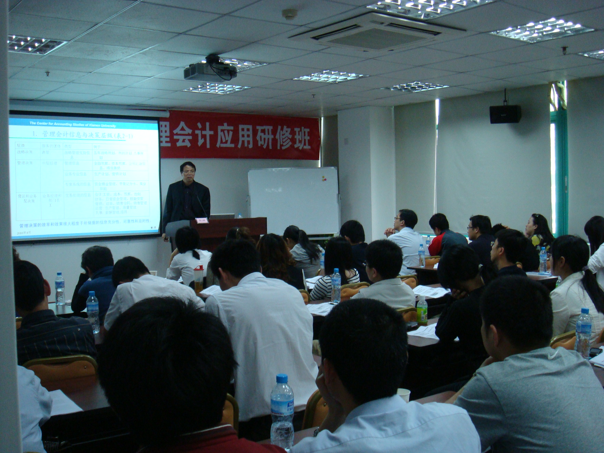 2010年4月29日下午到晚上,由廈門市總會計師協(xié)會主辦,華夏經(jīng)緯財務咨詢(廈門)有限公司承辦的“成本管理與管理會計應用實務”高級研修班在廈門富興大廈8樓華夏經(jīng)緯培訓室成功開班。